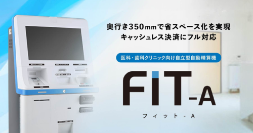 『FIT-A』は、病院業界の自動精算機で高いシェアを持つ株式会社USEN-ALMEXが、これまでに培った精算機のノウハウを活かしてクリニックに特化して開発された自立型の自動精算機です。奥行きわずか350mmの省スペース設計で、受付周りに余裕がないクリニックでも導入しやすいのが特長です。