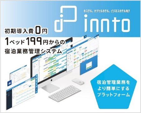ホステル、カプセルホテル、ビジネスホテル、グランピング施設、キャンプ場、民泊など、業態を選ばず初期費用0円で導入できる宿泊業務管理システム「innto」をご紹介します。「innto」は、予約はもちろん、客室やゲスト、帳票・精算の管理など、宿泊施設にまつわる業務を低コストで一元管理することが可能なクラウド型サービスです。オプションのチェックインアプリ「スマチェ」を組み合わせることで、チェックイン業務もよりスムーズになります。