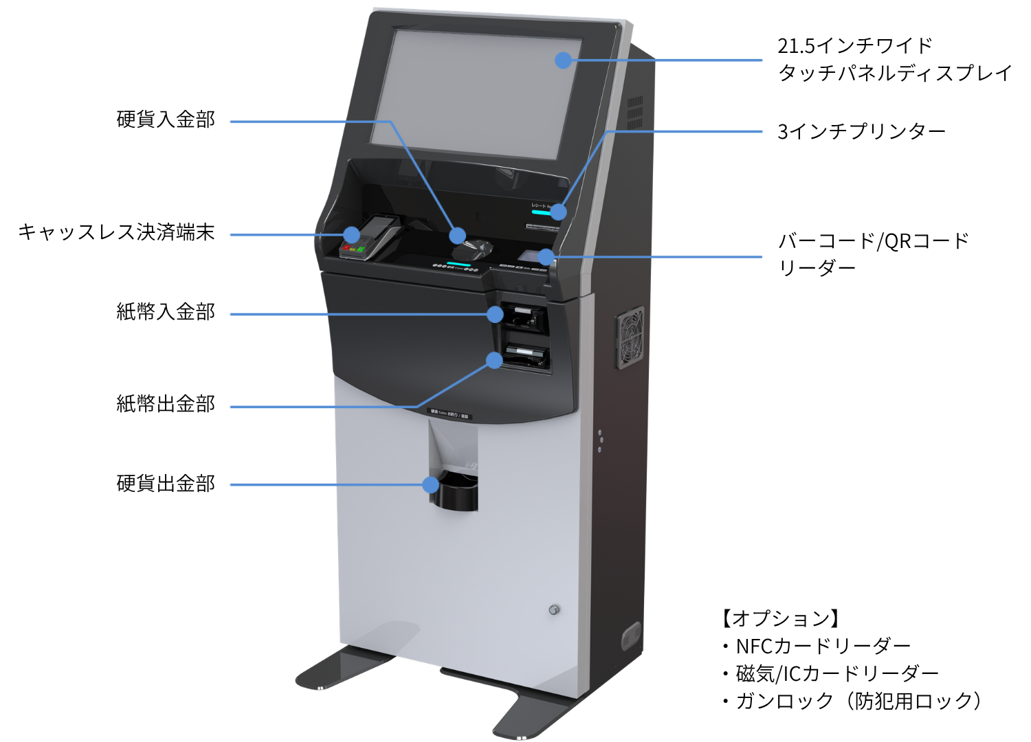 | 硬貨ユニット | 全金種還流、一括投入 1円/10円/100円各500枚、5円/50円各300枚、500円250枚 |